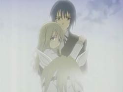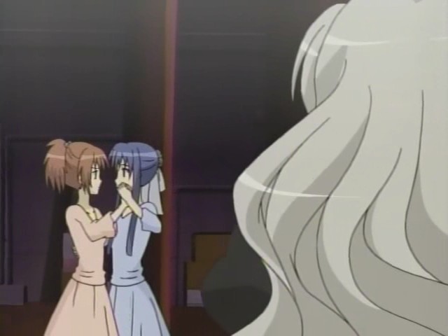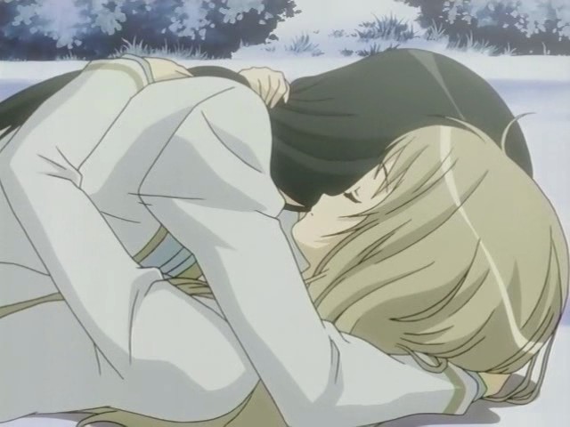 -Amane has decided to stay in the building adjoining the stables since she has to get up early the next morning anyway to take care of Starbright. Hikari vows to stay with her this night, and so the two share the only blanket. Remembering how Hikari had found the scarf, Amane wonders why Hikari was out there, and Hikari admits that she had been looking for Amane for a long time. Amane knows that scarf is an important thing, but she can’t remember anything about it. Hikari starts crying because she’s happy that she’s still connected to Amane in some way. After Amane wipes away Hikari’s tears, Hikari starts singing. Amane recognizes the angelic voice as the same one she heard when she first became acquainted with Hikari that one foggy morning. She finally remembers who the girl next to her is and says Hikari’s name. Hikari realizes that Amane got her memories back and tearfully hugs her. The two kiss and then spend the rest of the night together, ending up naked on the blanket by morning.