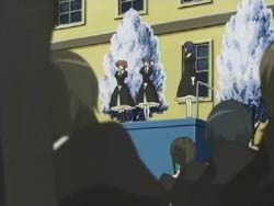 -When the time comes, Miyuki presents Tamao and Nagisa as the two candidates to the entire Miator student body. After Nagisa and Tamao introduce themselves, they formally declare that they are participating in the Étoile selection as representatives of Miator, a statement which is met by wild applause. Shizuma, however, is not part of that group, choosing instead to stay in her greenhouse.