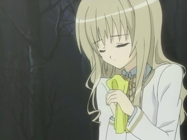 -By evening, Yaya reports to Shion that Hikari hasn’t returned, and neither has Amane. Hikari is actually wandering through the forest and sees the yellow scarf lying on the ground. Just as she’s holding it and thinking about Amane, Starbright and Amane show up. Amane thanks her for finding the scarf and explains that she’s been searching for it since the wind blew it away during her practice. She doesn’t remember who gave it to her, but she knows that it’s something very important.