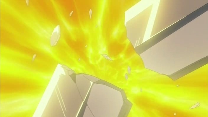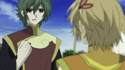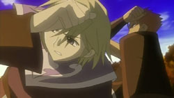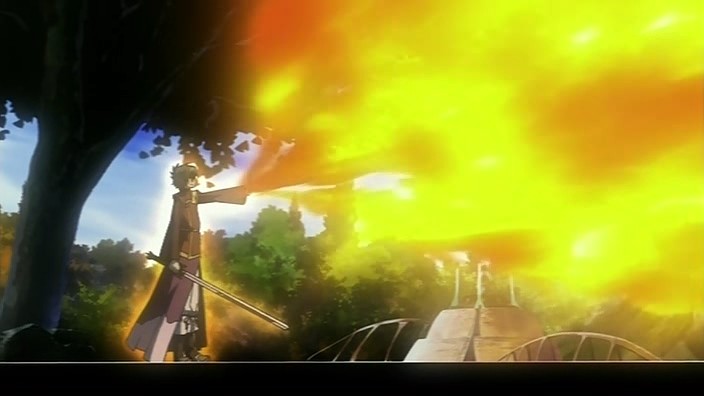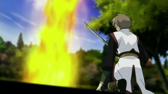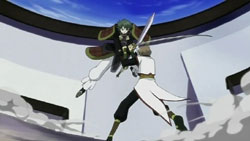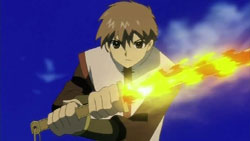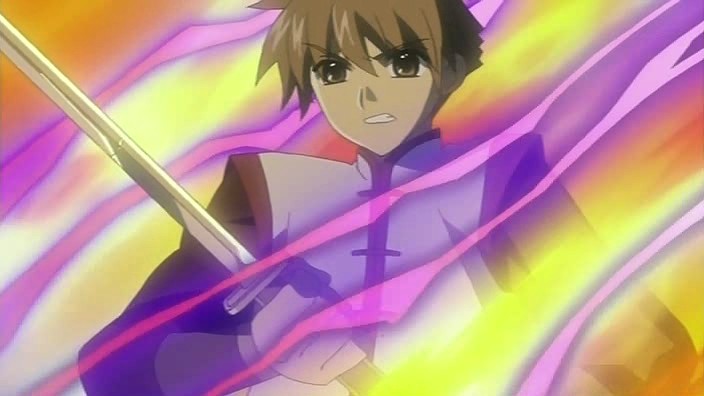 -Syaoran directs a flame attack at Chaos, but Chaos avoids it. Chaos locks blades with Syaoran, explaining that he loves Sakura and causing cracks start to form on Syaoran’s sword. When Syaoran uses another fire attack, Chaos sucks it in and then uses an attack that combines his own ability with Syaoran’s fire. That is enough to break Syaoran’s blade and keep him down.