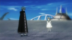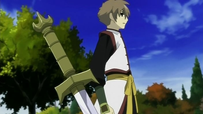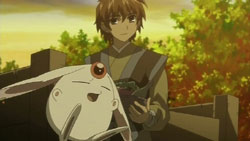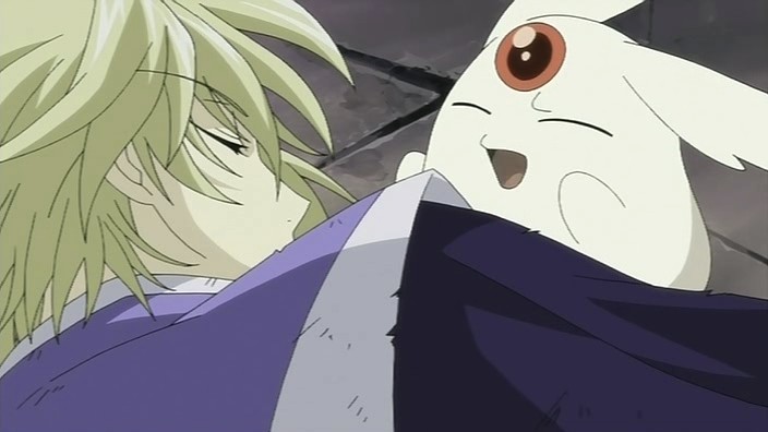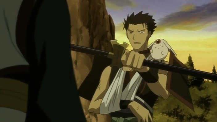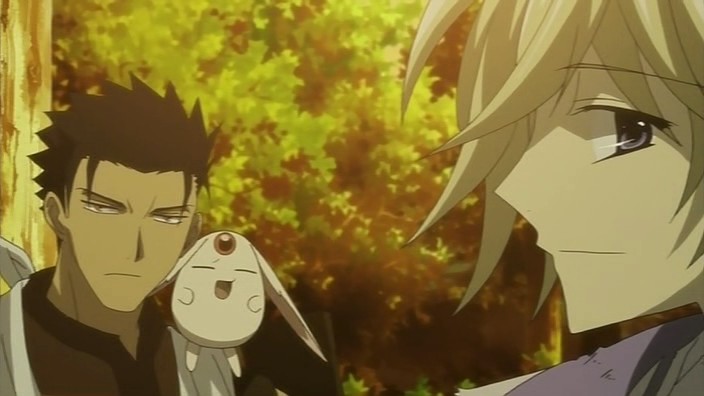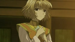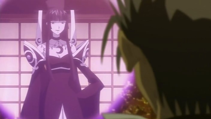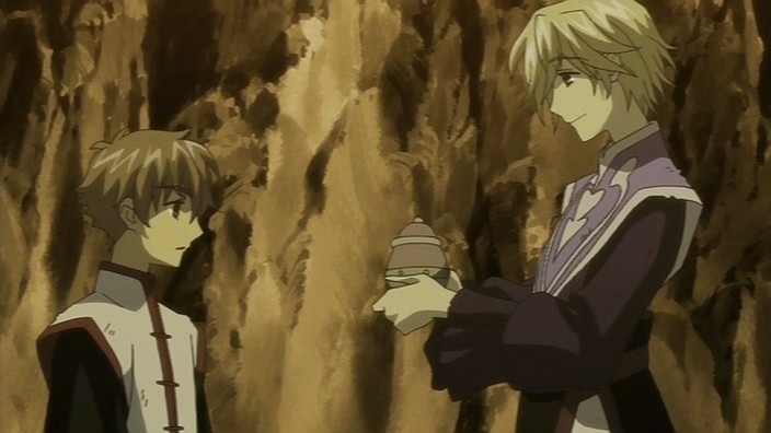 -Kurogane contacts Yuuko and requests that he borrow Ginryuu for Syaoran’s sake. Yuuko thinks that Kurogane should trust and believe, and doesn’t lend him the sword.