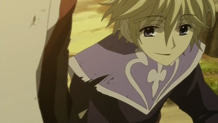 -With Sakura gone and his sword broken, Syaoran wanders off to think. Knowing that this is about more than victory or defeat, Fye follows him and asks him tells him that for this once, he should think about himself instead of about Sakura. Fye suggests that the most important thing is whether or not Syaoran needs Sakura.