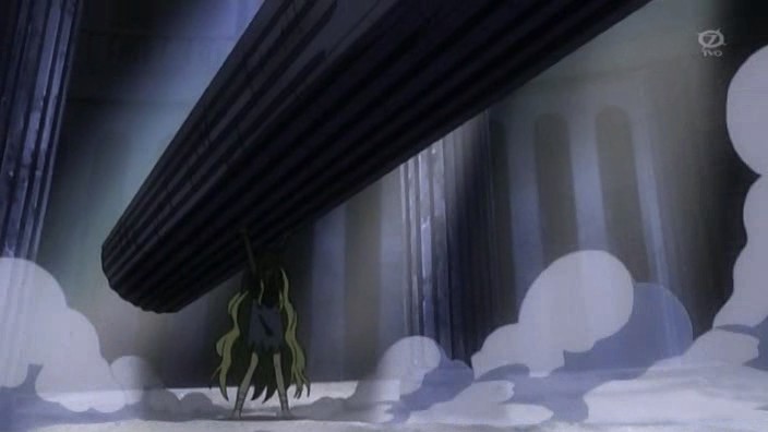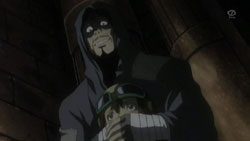 Since Allen identified her as a doll, Lala goes hostile by throwing a pillar at him. Allen stops her with his arm and calms her down, allowing her to tell him that Guzol is going to die soon. She’s willing to give up her heart, but she doesn’t want to be separated from him. After they settle down, Lala explains that to avoid the severe climate and heat, the people of Mater expanded underground. They had discovered the Innocence underground, and had implanted it into a doll they created to allow them temporarily to forget their painful days. Hundreds of years after that, when the town is ruins and there were no people to hear its song, the doll came across a young boy. She had offered to sing for him, and the boy named Guzol had been overjoyed. Guzol was the one who named her Lala, and they’ve been together ever since. Lala now wants to be with Guzol until the end, which is when she’ll give up her heart to them. Despite Lala’s pleas, Kanda refuses because they have their mission and should take the heart now. When Allen claims that he can’t do it, Kanda reminds him that they are Exorcists and that it is because there is sacrifice that there is salvation.