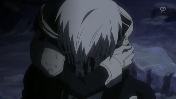 A pissed Kanda declares that he hates naive people like Allen, but he hates people who don’t do what they say they will. Allen powers back up his arm after a moment and the two combine their attacks to vaporize the Akuma. With the Akuma gone, the Innocence they were after falls down from the sky, landing beside an exhausted Allen. Lala has regained movement, but she has lost her personality and is now just a doll. Right before he dies, Guzol declares that he loves Lala, and she starts singing a lullaby for him. She continues singing, and it is three days later that a healed Kanda finds Allen still depressed. Having been in contact with Komui, Kanda is preparing to leave for his next mission while Allen is tasked with returning the Innocence to headquarters. He suggests that Allen go stop the doll if the singing is too painful for him, but Allen remembers the promise that only Guzol would stop Lala. Kanda calls Allen naive again, and states that they are destroyers, not saviors. A sudden wind blows through, causing Allen to notice that the singing has stopped. In the room where Guzol died, Lala’s eyes have become lifeless, though her mouth is still open. Approaching the doll, Allen hears Lala thank him for letting her sing until she broke, allowing her to fulfill the promise. With these words and the motionless doll in his arms, Allen starts crying. As Kanda and Toma come up behind him, Allen declares that he wants to become a destroyer who can save people.