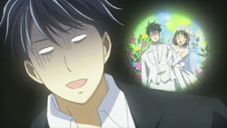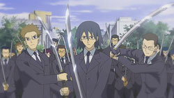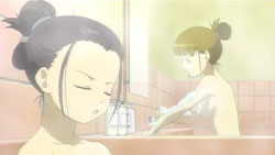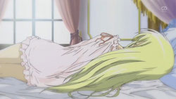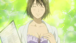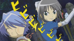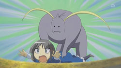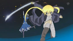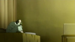 The episode opens with Ayane sitting out on the porch having some seaweed crackers. Turns out they’re spiked or something by Machi, which causes Ayane to have an aneurism, immediately prompting the OP sequence to start.