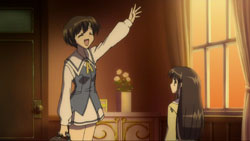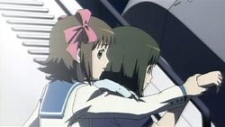 When her classmates come to visit her at the hospital, Koyori tells them that she's not lonely because her sister always comes to visit and because she has someone to play with here.