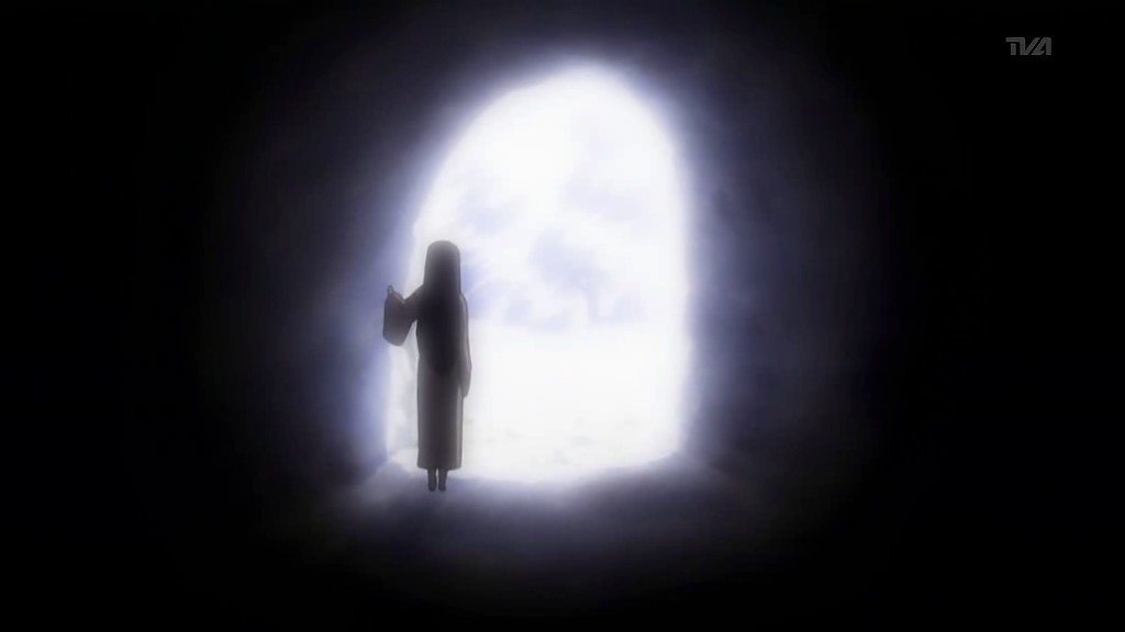 Most of this introduction episode was quiet and pretty to look at with all the sky and sunset imagery, and I originally hadn’t expected this to be anywhere near action-oriented. Thus, the end of this episode came as a bit of a surprise because all of the sudden Noto Mamiko‘s character was jumping around avoiding a guy armed with bright lights and a sword. It adds an interesting element to the story, along with all the hints of Matsuri not being human since she never shows up outside during the daytime and she has to avoid bright light.