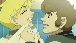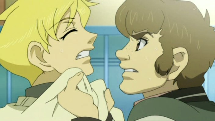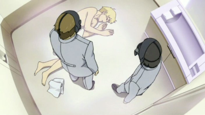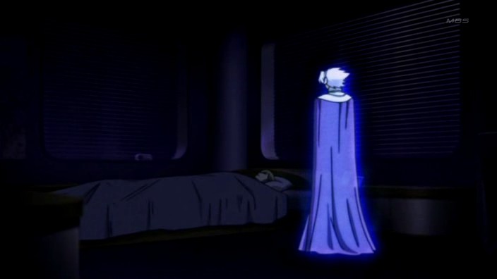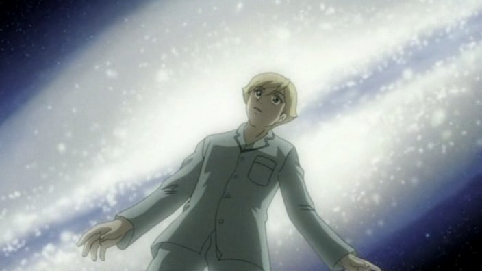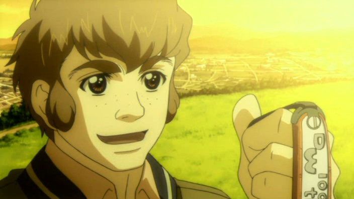 In a dream sequence, a white-haired boy named Soldier Blue and a girl talk of the future of the Mu, and she shows him an image of Earth. Because his life is short, Soldier Blue needs someone to entrust his memory and future to. Jomy Marcus Shin wakes up from his dream at this point. Today is the day before his 14th birthday, the day of his Awakening, so his family will be celebrating tonight. This is also Jomy’s last day at school because his Awakening signals the beginning of his journey into adult society. After parting with his friends, Jomy goes home and asks his mother if she won’t be lonely without him around. She starts nearly crying because of this, but says that he has to grow up. Later that evening, a group of men from Universal Control arrive at their home wanting to administer a psychological examination to Jomy. They knock him out with gas while he’s in the bathroom and take him out to their truck outside where they subject him to a testing machine. In the end, they don’t find anything particularly abnormal with him in connection to the Mu, so he’s allowed to go back home and proceed with his Maturity Check tomorrow.