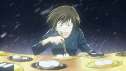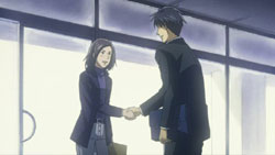 Seeing everyone in the S Orchestra performing well on their exams, Nodame regrets that the group is breaking up soon. Mine suggests to Chiaki that they start their own orchestra, but Chiaki shoots down the idea and doesn’t answer Mine when he asks what Chiaki is going to do from now on. When they go to the supermarket, Nodame notices that Chiaki is buying canned food again, so she offers to treat him to dinner. They head to a conveyor belt sushi restaurant where, much to Nodame’s dismay, Chiaki starts taking all the expensive plates and eats only the fish. On the way home, he realizes that she treating him because she was worried about him. Because of this, he tells her about his plans to convince the new conductor of the A Orchestra to let him help out in conducting. Chiaki’s actual opportunity, however, comes when a familiar face suddenly reappears the next day at school. He recognizes this person as Miki Kiyora, the concert master from the Nina Lutz music festival. It seems that she will be studying at this school because her teacher is going to be instructing here, and the one thing she wants to do is play in an orchestra with Chiaki again. Kiyora thus proposes starting a new orchestra together with him, and Chiaki immediately agrees to do it. He’s even more excited when she tells him that she can get some of the same musicians from the festival to come join them, especially since Chiaki is now well-known because of the magazine article. Having overheard the conversation, Mine asks Chiaki to let him join this new orchestra. Chiaki consents, but it’s on the condition that Mine is able to make it into the A Orchestra too.
