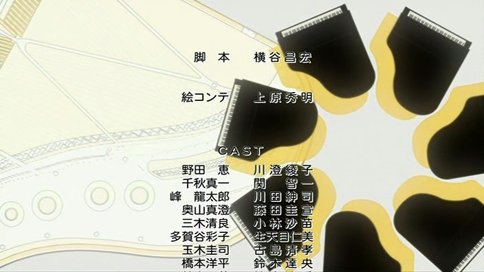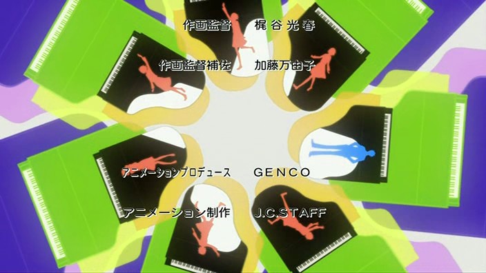 Ah, more spinning imagery. I can remember back to all the spinning stuff from Honey and Clover – this director really seems to like it. Anyway, Sagittarius starts as a good song, but the chorus parts come off sounding a bit too much like the opening song (which is still the same). I miss the first ED already, especially since an instrumental version of it played near the end of this episode.