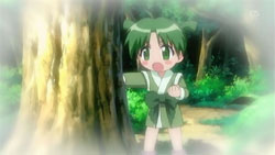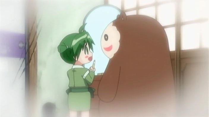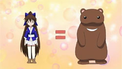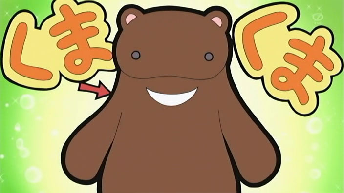 “Kuma Kuma! Where are you?” Yotsuba Yukino calls out. She walks into the shed – oh crap. That plushie excuse for a bear ate all of the jam! “You’re no different from Suzu and her daifuku!” Yukino scolds. DAI SHOCKU!