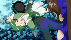Meanwhile, Suzu is off on her own search, and gets intercepted by Ayane in a completely meaningless scene. I’m guessing the producers got too much hate mail from Ayane fanboys that felt shorted by her lack of screentime in previous episodes. Meh, where’s Machi…