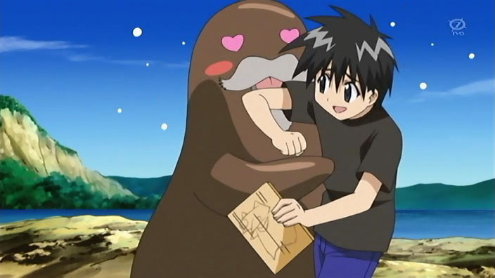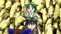 Turns out Kuma Kuma is missing. Ikuto says he’ll help look, much to Yukino’s delight. Much to my delight, she hops on his shoulders as I secretly hope that Ikuto will comment on a slithery sensation on the back of his neck. Anyways, the Yukikuto gattai trudges off in one direction as the animals usher Suzu off in another.