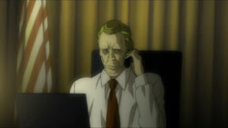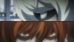 After last week’s frenetic rush through a volume’s worth of manga, this week’s episode, not surprisingly, slows down the pace a bit. It roughly follows the manga, but the order has been rearranged a bit and some of the story has been skipped over (the entire Mogi and Mello part). Overall, I liked the first half of the episode a lot more because it had a touching scene with Light’s mother grieving and a very stylistically cool scene between Near and Mello. The second half was heavy on the Kira vs. Near intrigue, but it wasn’t as interesting to watch.