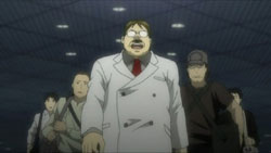 animeaddict: do you mean the blonde or the person with the coat… that blonde must be female due to the breasts which i have no idea who it is. I think the person with the coat is the female is that women that her husband died in episode 5 or something?