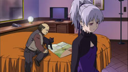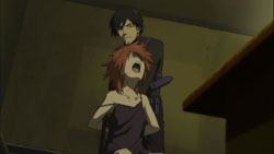 As he breaks Havoc’s fingers one at a time, Hei orders her to tell him what happened with herself, Amber, and his little sister on the day South America disappeared. He angrily questions why only she and he are here now, and where his sister is. Havoc finally answers that she wasn’t their comrade, so she doesn’t know anything about Amber’s group, including if they’re still alive or not. She had indeed been in South America on that day to carry out the Organization’s orders, but she doesn’t remember anything after that happened. When she regained consciousness, she found herself in the remote countryside of Europe, and she had lost her powers for some reason. After that, she didn’t set foot outside town and instead lived a quiet live that didn’t have anything to do with the Organization or contracts. This explanation, however, doesn’t satisfy Hei and he grabs her neck. Havoc claims that she doesn’t have the information he wants and feels that he should understand that Contractors don’t give priority to the Organization or to ideology – they give priority to themselves. She reminds him of how cold-hearted he had been before he became a Contractor – to the point of being feared as the Black Shinigami – and notes how now that he’s become a Contractor, he gets unglued just because of his sister. For saying this, Hei smacks her across the face with such force that she falls to the ground. Despite that, Havoc still questions if Hei’s really a Contractor since he’s emotional, but not mentally unstable like a Moratorium, and she hasn’t seen him pay the price for his contract yet either.