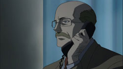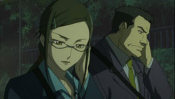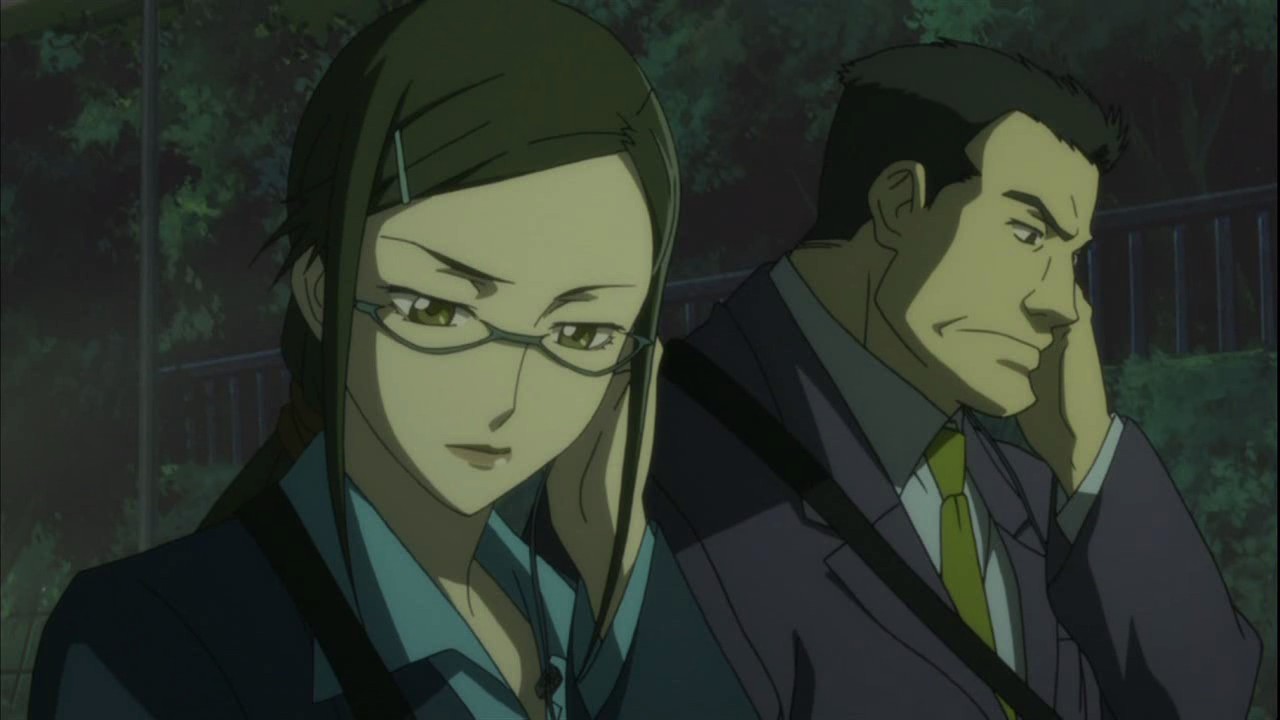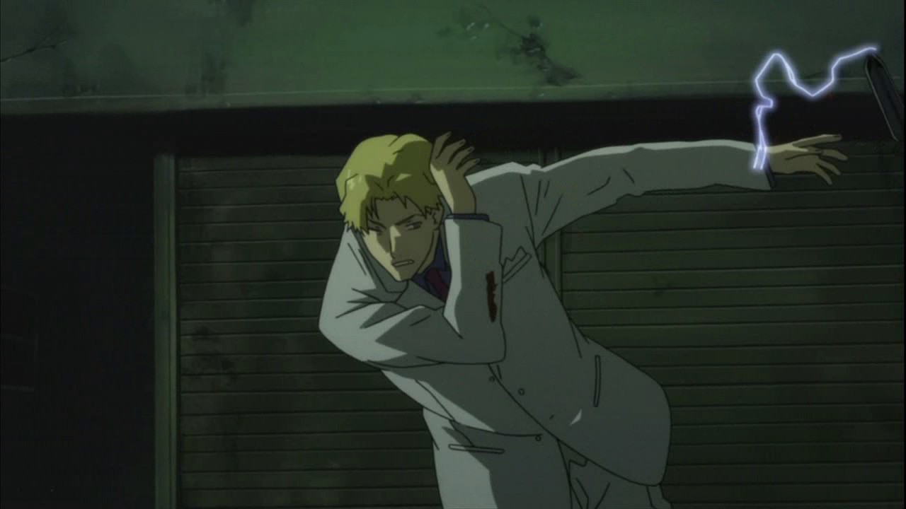 By morning, the police have arrived onto the scene and find Havoc’s body in the alley where Hei left her. After inspecting the corpse, Misaki asks November 11 why Havoc didn’t use her power since Astronomy Department had confirmed that she had actually gotten her power back. Misaki surprises November 11 by saying that she hadn’t realized that November 11 had been that afraid of Havoc, but she then claims that it’s a joke. On a rooftop elsewhere in the city, Huang questions why Hei acted on his own. Huang’s not going to report it to the Organization because they wouldn’t get away with it if they’re found out. Hei answers this by asking why they didn’t just kill him back there. This gets Huang angry enough to grab Hei by the collar and declare Contractors should just keep quiet and kill people. As he stares out into the distance, Hei gets a surprise when Yin suddenly grabs his hand, but he quickly shakes himself free. Yin’s expression never changes through any of this. At that time, over at the British Intelligence Agency’s Secret Intelligence Department, a balding man calls up someone to tell them that he’s read the report and wants them to stay put to continue the investigation on the organization and 201-BK.
