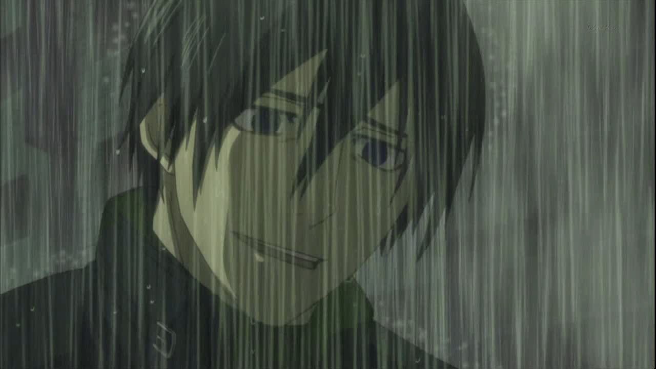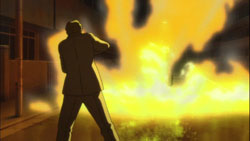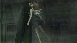 Unfortunately, the pair are unable to run away from April’s swirling cloud and proceed to get rained on. Havoc isn’t able to keep up with Hei’s pace and panics because she’s scared. She doesn’t want her powers to return and doesn’t want to kill anyone anymore, so she once again begs Hei to kill her. Hei manages to calm her by placing his hands around her face, and he suggests that if they leave this place, her power won’t return and she won’t have to kill anyone. He smiles weakly at her and she smiles back, but something soon pierces through her. It’s an icicle, and Havoc quickly gets speared by two more of them. Hei gets Havoc out of the open, but it’s too late. In her final breaths, Havoc touches Hei’s face and smiles at him. Above them, a star streaks across the sky. With Havoc dead, Hei puts on his mask and finds November 11. The MI6 agent immediately tries to freeze Hei’s feet, but Hei stops it with a blast of electricity. Hei then pits his acrobatic movements against November 11’s icicles, but it’s November 11’s second attempt at freezing Hei’s legs that gets him. When Hei then attempts to use his power on his opponent, November 11 reveals that he’s wearing rubber boots. As he lights up a cigarette, November 11 says that Hei’s mission should have automatically terminated with Havoc’s death. He wants Hei to give up and claims that they only want to know what organization Hei belongs to. Hei responds to this by throwing one of his cabled daggers into November 11’s arm and attempting to kill him with electricity, but November 11 manages to free his arm in time to save himself. Before November 11 can retaliate with his own power, Huang fires a special grenade between the two Contractors, and by the time the flames die out, Hei is gone.