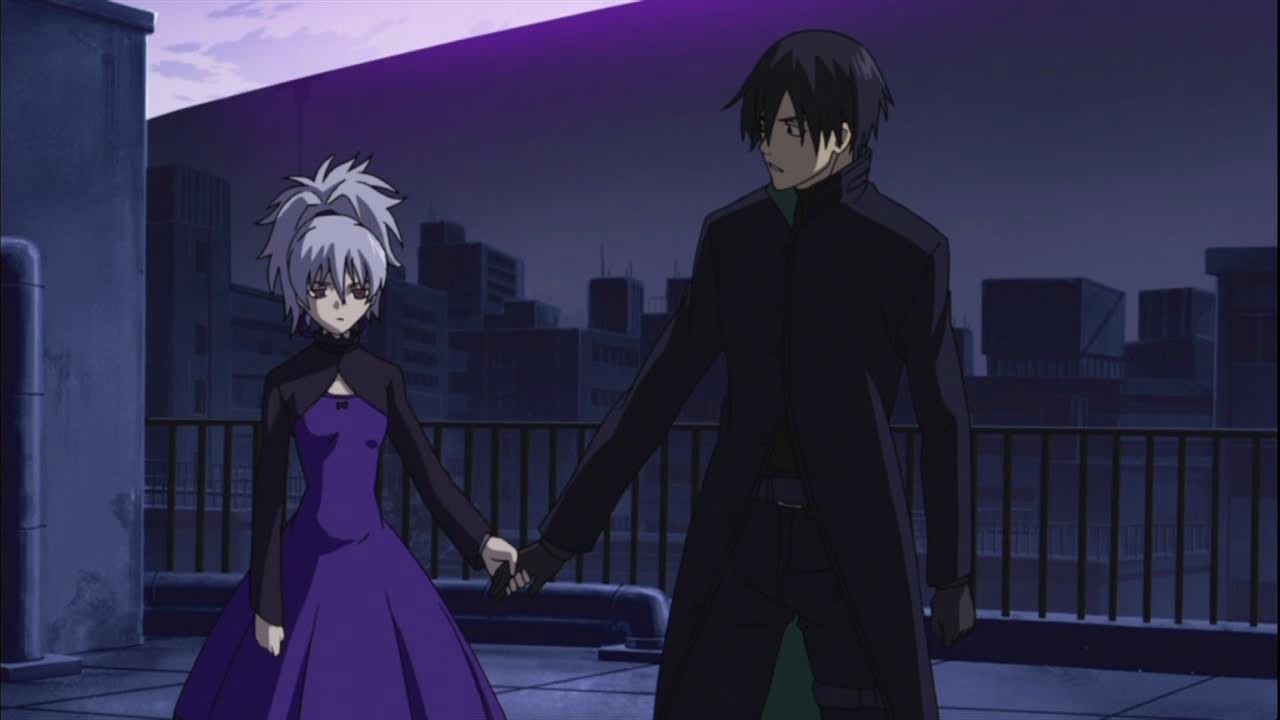 As Havoc and Hei walk along the abandoned road, she suddenly stops and pulls on his hand. Hei notices how hard she’s breathing and how much her arm is shaking, but Havoc still wants to continue onward. When they reach the chain-link fence separating them from the wall of the Gate, Havoc’s entire body starts shaking and her eyes begin to glow red. It is around this time that Misaki gets a call from the Astronomy Department informing her that Havoc might have regained her power. Misaki immediately requests a special force be dispatched, but she stipulates that they not fire without her orders. She and the others then notice that November 11, April, and July have all disappeared. Havoc meanwhile runs towards a building away from the fence and apologizes to Hei, but she doesn’t want him to get any closer to her and explains that a certain feeling has returned. She had thought that if she could change like him, then it would have been okay for her to accept her powers again. However, it seems that she doesn’t have the capacity for that. Havoc feels that if she had met Hei earlier, she wouldn’t have feared the contract and might have lived. Instead, she now begs for Hei to kill her. Hei’s feelings conflict about it for a moment, but then a powerful wind blows through, and he realizes that a Contractor is coming. He decides that they should escape from here and asserts that Havoc’s not a Contractor anymore, so she doesn’t need to die.