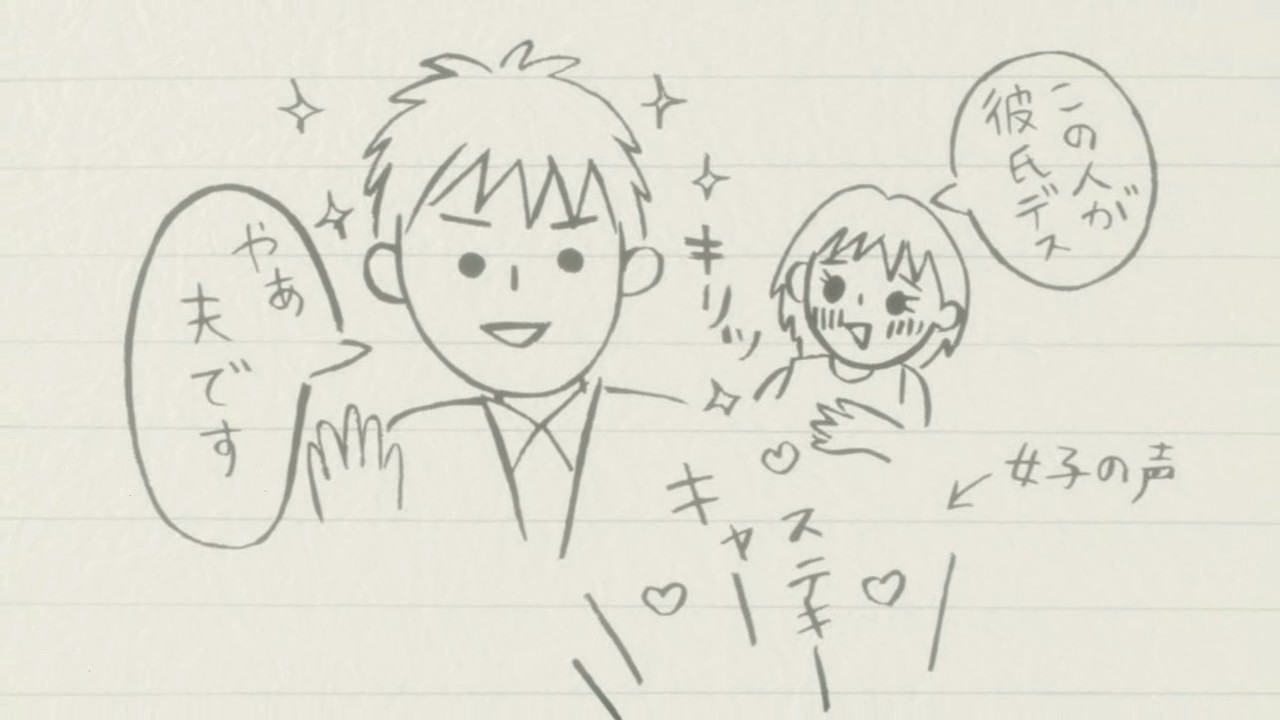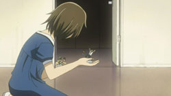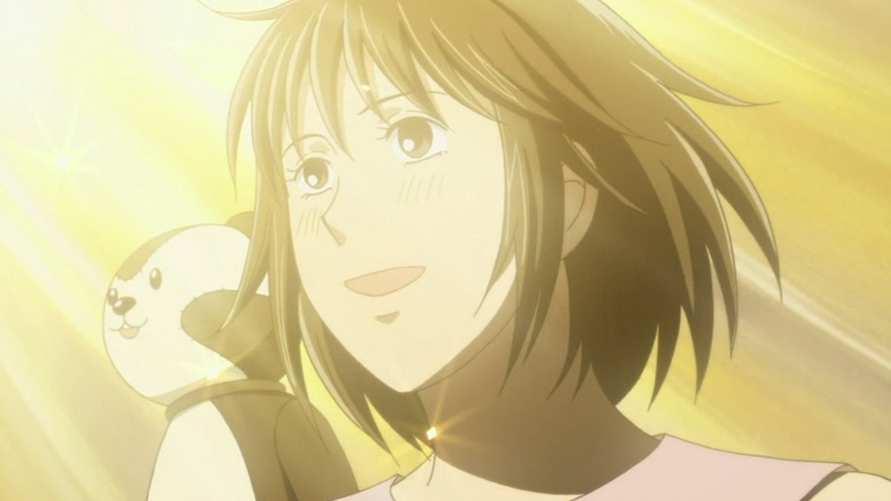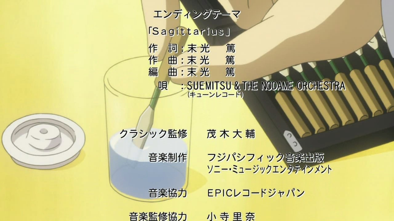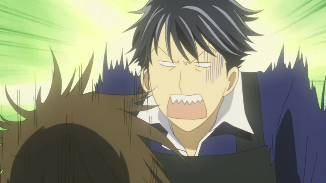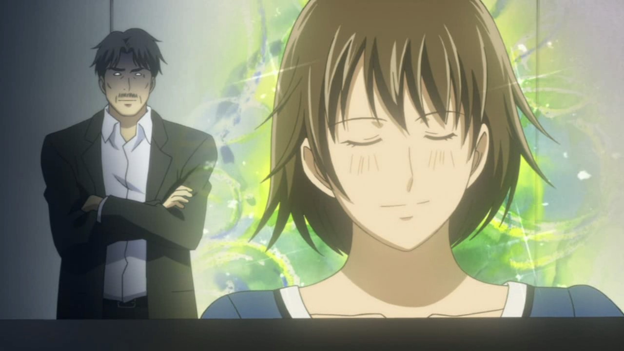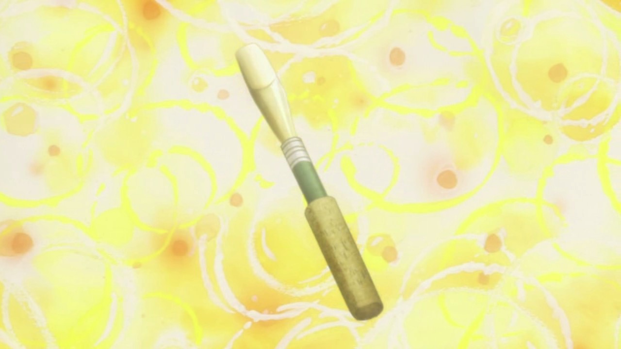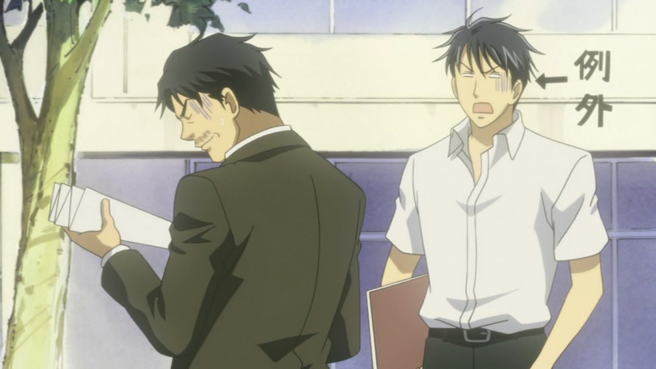 The next day, Kuroki is trimming his own reed when he notices Nodame hiding nearby. As he returns the thermos from the miso soup, Kuroki introduces himself and compliments her for the food. He reveals that he’s here so early because he needed to shave his reed since oboe players need to make their own reeds. Because there is no such thing as a perfect reed, Kuroki feels that oboes are incomplete instruments, but he still likes oboes. This reminds Nodame of how she enjoys playing the piano, but also of how Chiaki wants her to aim for a higher goal. She thus asks Kuroki if he’s aiming for a higher goal such as becoming a professional and if it’s weird that someone trying to be a kindergarten teacher also aims for a higher goal. Kuroki doesn’t quite understand what she means, but he tells her that he’s happier if he can play the oboe better. Etou meanwhile finds Chiaki on campus and explains the situation with Nodame. Chiaki feels that Etou doesn’t give normal lessons since he carries that harisen, despite Etou’s claims that the harisen embodies his love. Chiaki is then reminded of how Nodame doesn’t run away from him even though he abuses her the same way that Etou did, and in the end, he comes up with a plan for the instructor.