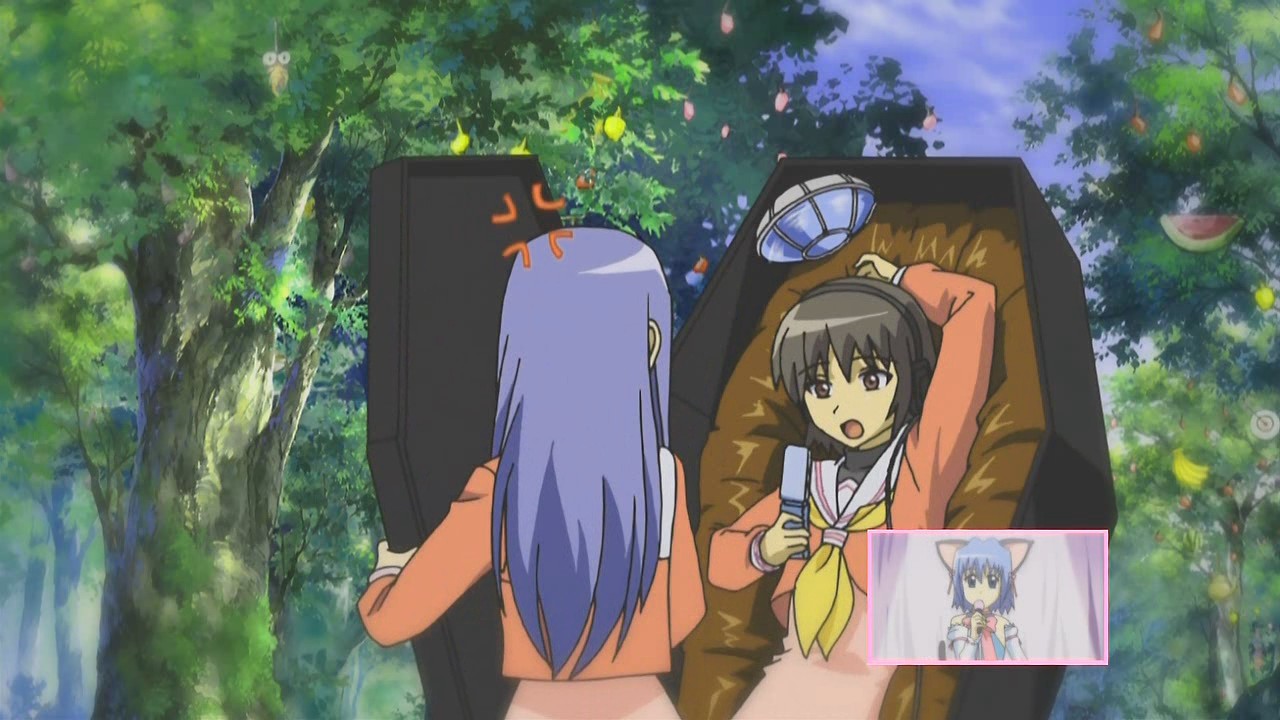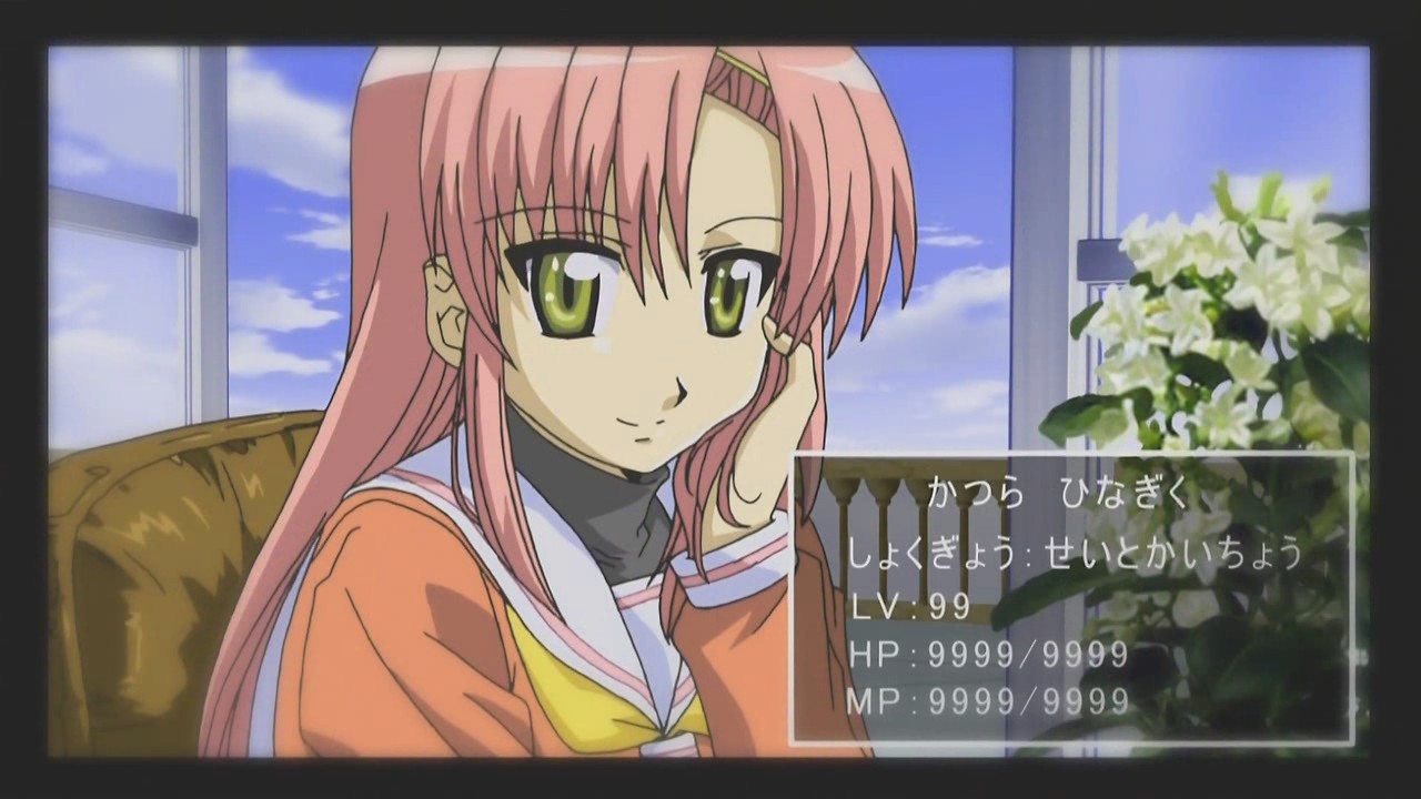 This was easily my favorite episode of Hayate so far in terms of comedy. In fact, I challenge someone to name all the parody references and where they occur because the 2ch list has grown to over 40 games and anime. My own list includes: