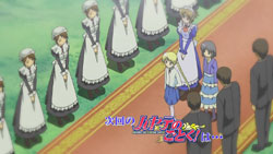 By chance, when Izumi, Miki, and Risa come to see the new butler at Nagi’s mansion, Miki picks up a controller and gets pulled into the game world along with the other two. Their first enemy is a slime that quickly kills Risa, and because it’s about to kill the Izumi and Miki too, the Demon King decides that she has to do something or else her heroes will die. She saves them with a lightning bolt that hits both the slime and Izumi, though Izumi survives with a single hit point left. Meanwhile, Isumi senses a monster and heads into the bath to investigate. Ayumu then does a horoscope countdown, but she never gets to the number one. Back in the game world, Miki calls up Hinagiku for help. Hinagiku arrives almost immediately after having driven away all enemies with a mere stick, and the girls try to explain that they’re inside a cursed game. However, Hinagiku doesn’t believe in something unscientific like that, and thinks instead that this is a large-scale surprise event being thrown by Nagi. She wants to get back to school and is looking for the goal, so the Demon King drops them some equipment to help them quickly reach the tower.