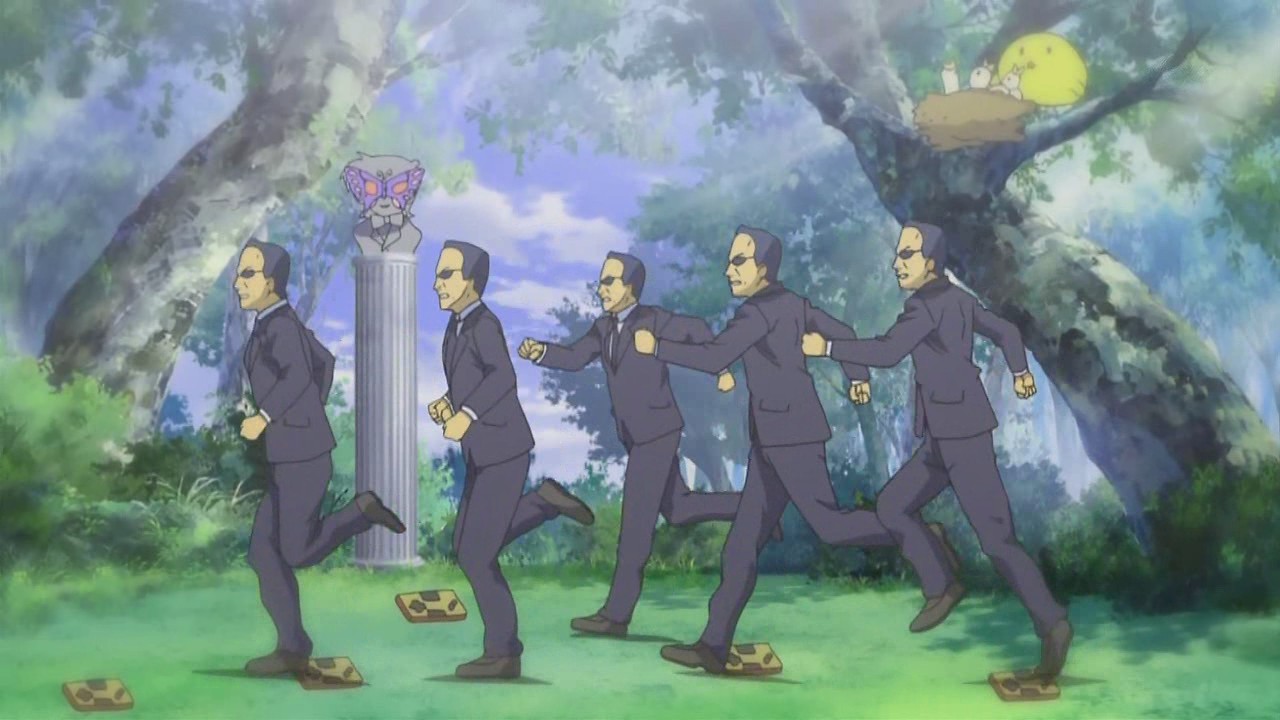 Isnt the papillion mask scene also a Matrix Scene? Where their is a bunch of mr.smiths