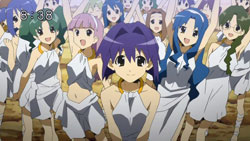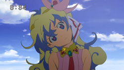 Back on the bridge, the crew gets a distress call from a group of girls representing a human village supposedly under Gunmen attack. Although almost everyone suspects that something is suspicious, Kittan thinks that they should go save the village immediately and shuts the others up by saying that Kamina wouldn’t hesitate if he were here. The Daigurren thus starts marching for the village and finds five enemy Gunmen there. After blasting those Gunmen and making them retreat, the group is greeted by a flock of beautiful village girls. They allow the girls onboard to thank them, but when Kittan asks about how there seems to be no men, a bunch of beastmen armed with guns suddenly appear and completely take over the Daigurren. As Leeron and the others had suspected, it was a trap, and Guame is the culprit. One of the beastmen’s goals is Nia, who willingly goes to see Guame as long as they don’t harm Simon. As she leaves, she tells a frightened Simon that he is not Kamina and that she feels he’s fine as himself.