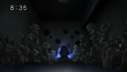 With Adiane’s apparent failure, Guame wants to be sent to dealt with the Daigurren next because he’s interested in the Lagann. At that moment, however, the Lagann is lying in a garbage heap on the Daigurren because Simon can’t use it. Yoko tells Nia that Simon can’t see his own troubles, so doesn’t have a place where he belongs. She feels that they can’t pamper him because he has to recover on his own or else it’s meaningless. Nia goes and finds Simon alone in a room making sculptures of Kamina with his drill, allowing her to understand how much Simon loved Kamina. Simon feels that he doesn’t have any redeeming abilities except in digging holes and remembers how he was derided by his old village. Kamina had been the sole person to not make fun of him, and Simon remembers Kamina’s strength and kindness. He wanted to become a man like Kamina, but he feels now that it’s impossible for him to do so.