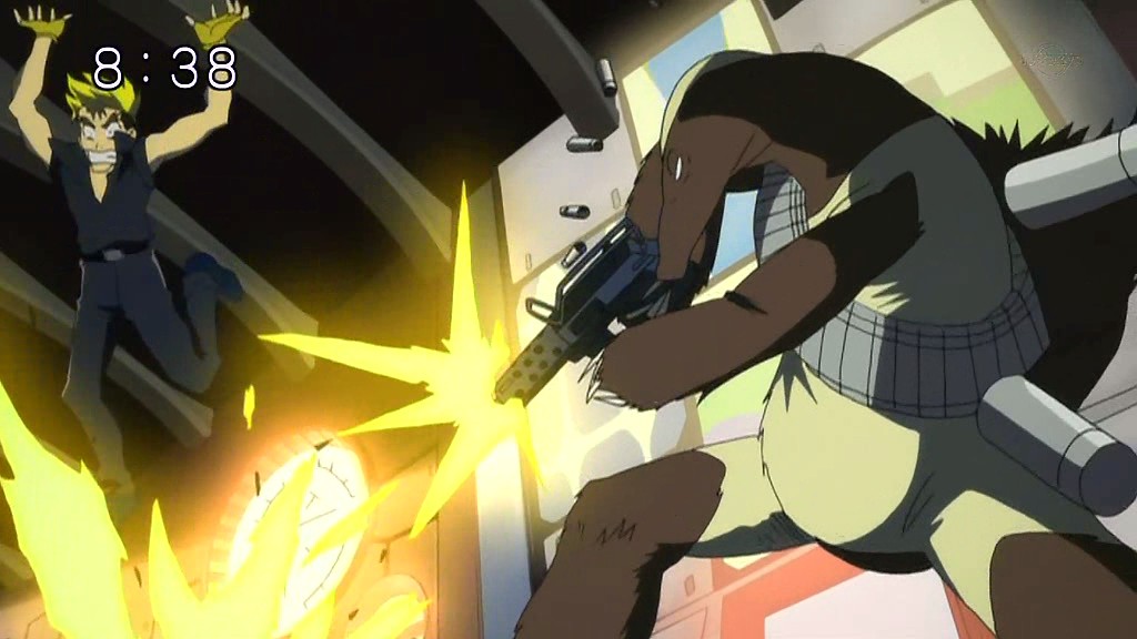 It seems like it’s been a long time coming, but it really took Simon only two and a half episodes to get out of his rut and gain that coolness factor that Kamina had. It was nice though to hear Kamina’s voice again one more time, and they paced it so that his flashback speech was the start of this comeback. The fact that Simon was able to pull off the Giga Drill Breaker attack would seem to mean that he has now succeeded Kamina and can now become more than Kamina was. It also probably means that they can now proceed with the series without having to mention Kamina at every turn.