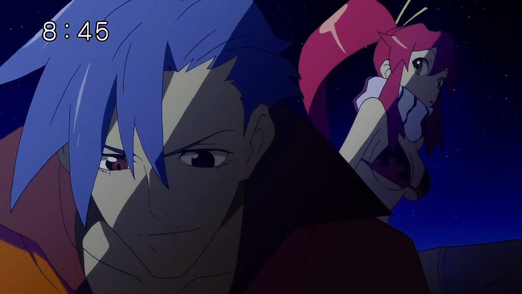 Episode eight showed that Gainax won’t hesitate to kill off important characters. I’m scared for Nia, maybe she’ll die around Episode ~16 when they’re facing the Helix/Spiral King… He created her so he can probably also destroy her easily.