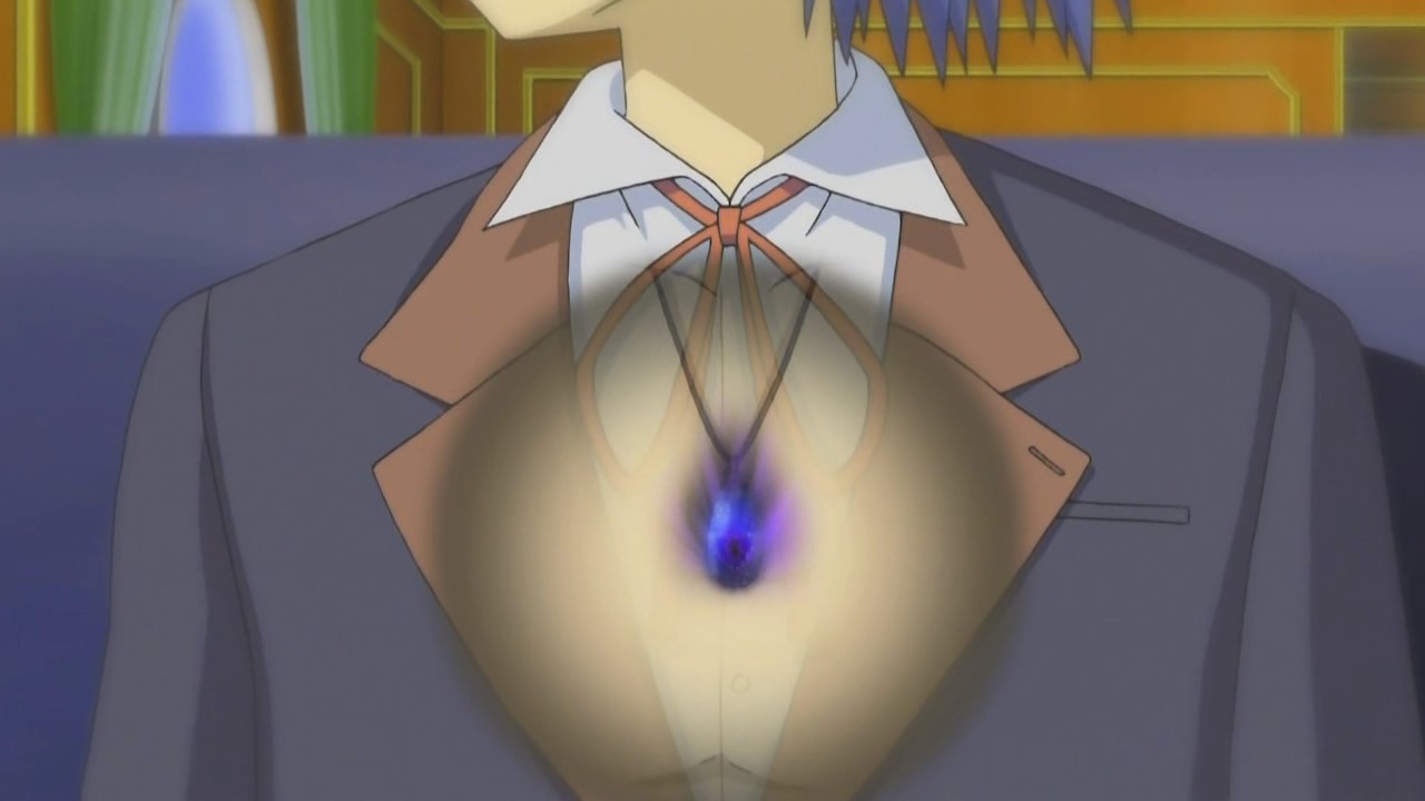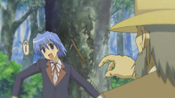 When the old man asks Hayate why he’s 150 million yen in debt, Hayate explains what his parents did and how he has to work for 40 years to pay it back. This makes the old man, who reveals himself to be none other than Mikado Sanzenin, say that Hayate’s life is meaningless because it’s wasted in repaying a debt. However, Mikado does throw Hayate a pendant that he claims is a guide. If Hayate does not think his life is meaningless, he should keep the pendant on himself and eventually he could get a lot of money. Mikado then returns to the castle to ask if Nagi wants the Sanzenin inheritance, and goes crying to Maria when Nagi says that she’d prefer if he died sooner instead. Nagi feels that she wouldn’t any money problems even without the inheritance because of her own stock portfolio, so Mikado decides to hold her manga over her. Nagi quickly beats him up and takes her manga back, but to her surprise, Mikado explains that he is mentioning this now because Nagi will die. A little later, Nagi finds Hayate and tells him that they’re going home. As they’re talking, the pendant starts emanating a dark aura and Hayate senses something coming.