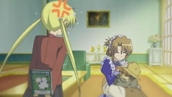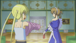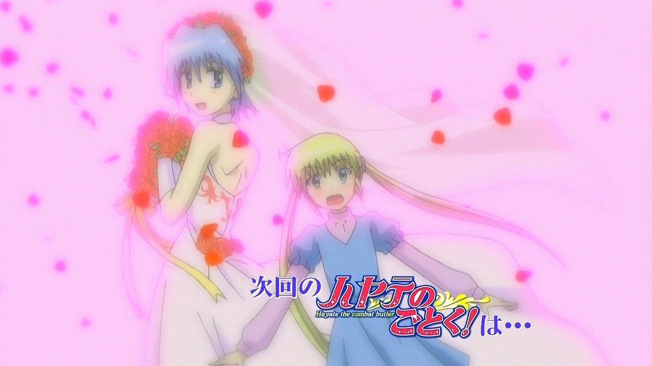 Next week’s episode looks like it’ll have Ayumu actually getting to talk to Hayate along with the the Hayate-wants-to-be-a-wife scene. Good ol’ Klaus…