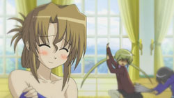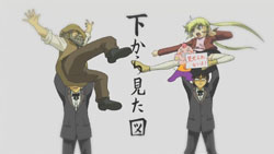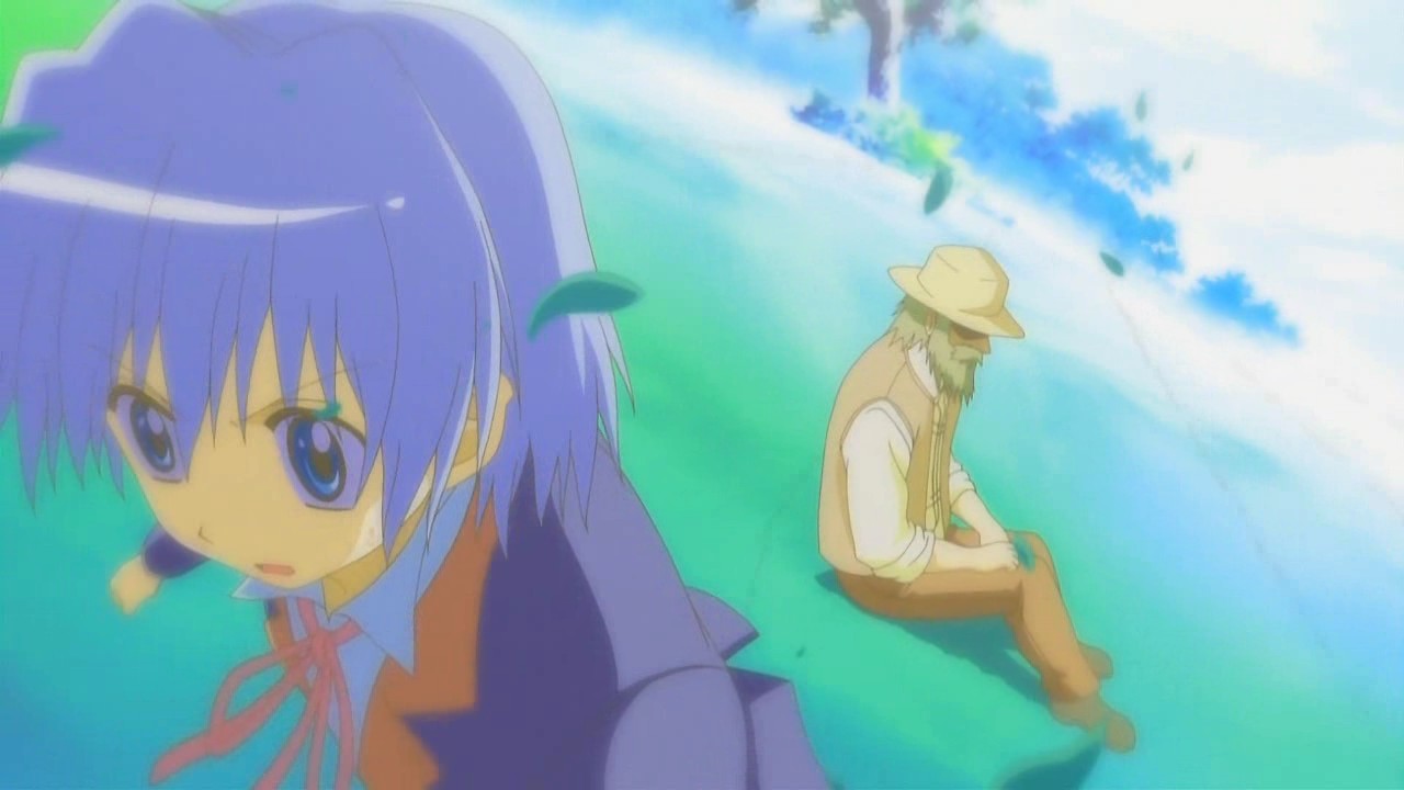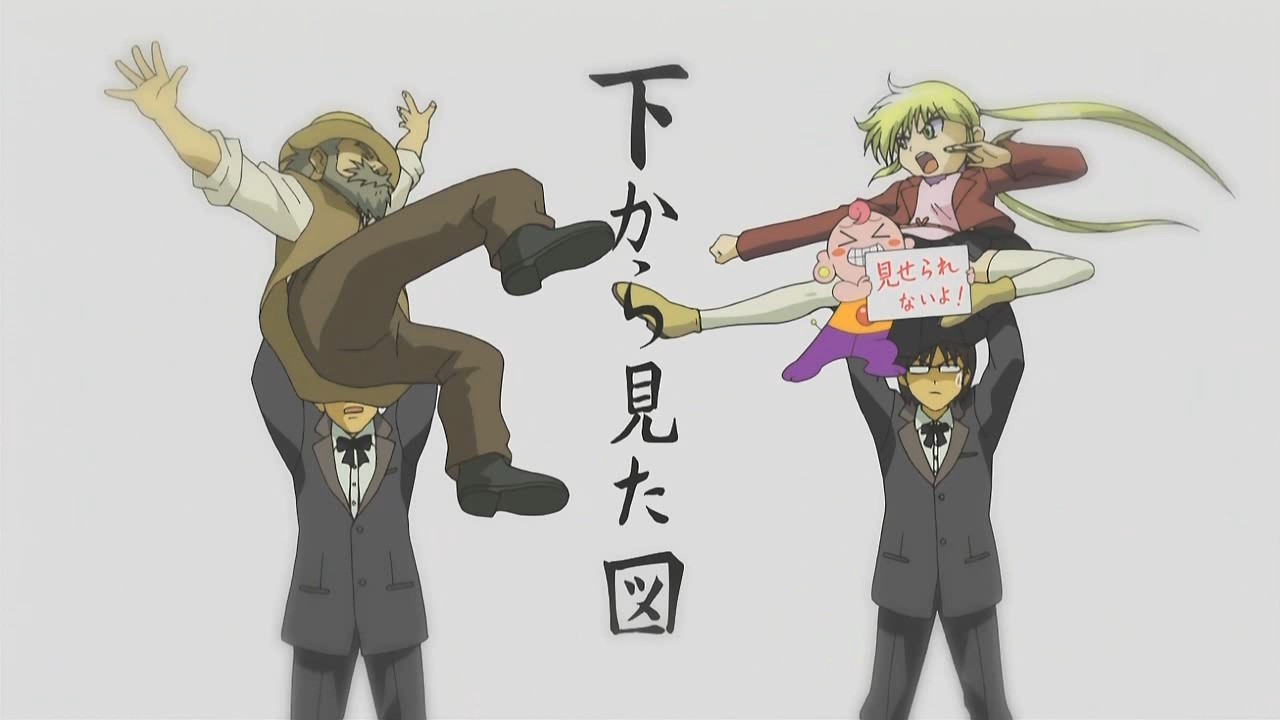 After seeing last week’s anime original episode, I’m actually kind of disappointed that they returned to the manga material because it just wasn’t as fun or funny to watch. There were still plenty of anime and game references, but they tended to be more obscure than the ones we saw last week (at least for me), like Zoma from Dragon Quest and the Hikouseki from Laputa: Castle in the Sky among others. I guess you could say they balanced it with actual plot involving Nagi’s grandfather, who, as I found out, shares the same name as a minor Ranma 1/2 character. In any case, they made the pendant seem a lot more prominent – especially with that dark aura – than I remember it being from what I’ve read of the manga, which makes me wonder if or when it’ll show up again.