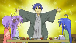 Whoa awesome ep. That dad sure is something, Tsukasa = Sakura, Kagamin = Tohsaka, and Konata = Saber ? Lol… he’s crazy