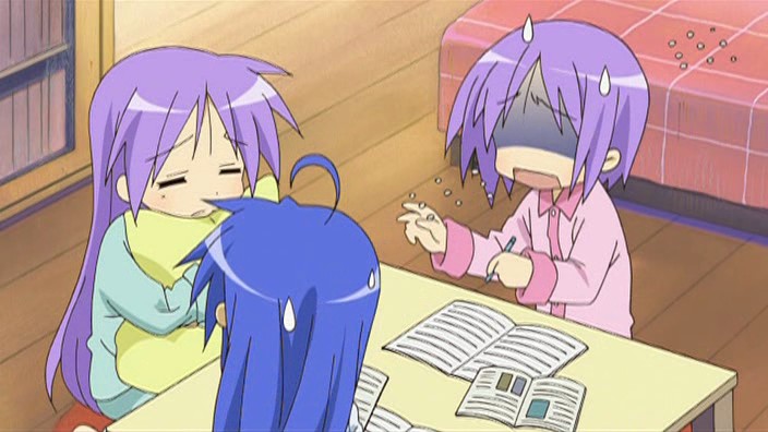 That reminds me of Ouendan for the ds and it seems the twins are sleeping over at konata’s.