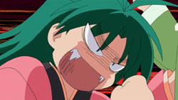 Elsewhere, Machi is craving some shaved ice so sends Ayane into the cave, and then hops aboard the Ikuto train. Along the way, Machi’s sandal strap snaps and a black cat crosses her path. Oooh, bad omen. She sends a morse code message to Ayane via voodoo telegram, which leaves Ayane in a sweaty, disheveled, flushed mess on the ground. Oh Ayane.