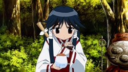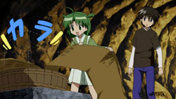 So Ikuto packs up and heads off by himself, with only the image of a feverish Suzu with her shirt slipping off her shoulders to guide him. Being the boke that he is, he promptly falls off the side of a cliff. Nope, not kiddin.