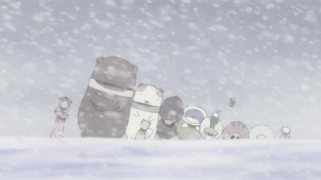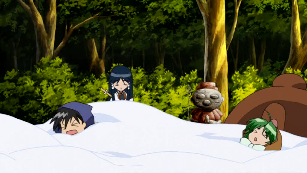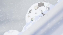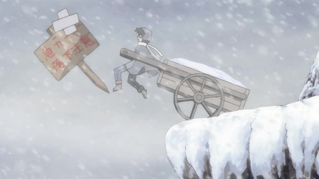 Meanwhile, back on the summit, everyone gets really cold and lets out a collective sneeze with the force roughly equal to two Vin Diesel hand grenades, which of course causes a huge avalanche with all of them balled up. By now, Ikuto has seemingly broken the world record for bare handed cliff scaling as he is nearly back to where he fell from…but guess what’s waiting for him at the top! Guruguruguruguru
