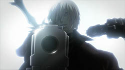 Since the games were apparently (I haven’t touched them) about shooting demons with big guns, the anime obviously had to turn out the same way, so we’re treated to a fancy trench coat-wearing hero called Dante, who likes nothing better than to run around with his two big guns (and a sword!) and squash evil demons. Realizing this doesn’t make for a very good plot, the producers gave Dante an office and he calls himself an “Odd Job Man”. From the first episode and its preview, we can surmise that it will be episodic, where random people show up at his doorstep and ask him to perform a mission, followed by Dante smashing demons with lots of blood squirting. I’m afraid I also have to inform you that he’s accompanied by a blonde little girl for no good reason whatsoever, other than to please people like, well, me.
