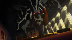 The stylistic scenes that Madhouse decided to go with (again, the restricted access scene, but also when Dante swings his sword and a shower of blood paints a smear across the wall) are also pretty awesome. It makes me wonder if they’ll top them.