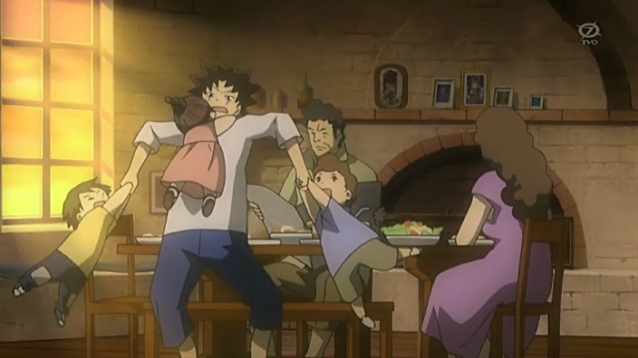 On their way to find Froi Tiedoll in Barcelona, Daisya and Kanda’s Finder asks them what the general is like, but before they can answer, they come under attack by Akuma. As he activates his Innocence to fight, Daisya reveals that the day he first met Tiedoll was just like today. Back then, Daisya had been the eldest son in a family that owned a small store, but he wasn’t keen on helping out and instead went to play soccer. On one particular day, he noticed someone – Froi Tiedoll – painting by the beach, and when Tiedoll stepped away for a moment, Daisya drew on the painting. Tiedoll returned to find the Innocence in his pocket reacting to the boy, but when he asked for Daisya’s name, Daisya ran away. Fortunately, Tiedoll was much faster than Daisya and cut off his escape, so Daisya had tried to kick the soccer ball at him. To Daisya’s surprise, Tiedoll kicked the ball back with an incredible amount of force, and he even invited Daisya to lunch. It is while eating that Tiedoll asked if Daisya wanted to become an Exorcist and revealed that Daisya is compatible with Innocence. Daisya, however, didn’t respond well to it and ran off, though he kept thinking about it for the rest of the day and through the night.