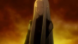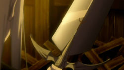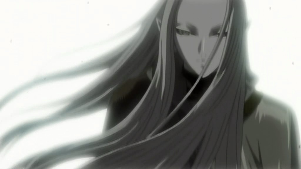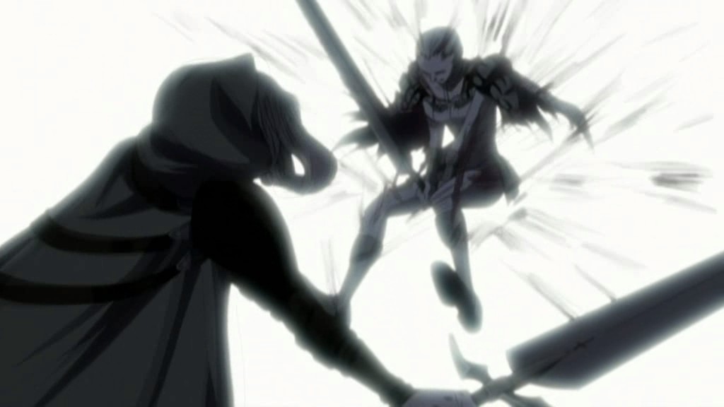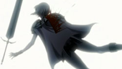 Clare eventually drags herself out of the river below and is still alive despite her arm, but unfortunately, Ophelia has followed her down. Ophelia had figured out that Clare had tried to make it look like she was done for, though she gave it away by being concerned about her arm even at the end. She then goes on to explain how there are offensive and defensive types of Claymores, and the offensive ones like Clare can’t completely regenerate. Since she’s not going to wait for Clare to reattach her severed arm, Ophelia quickly shreds it. This leaves Clare no choice but to try to fight with her remaining arm, but she’s unable to do any damage. Seeing how hard Clare is fighting, Ophelia guesses that Clare has either a promise with the boy or revenge that she still has to carry out. She then cuts off Clare’s other hand and tauntingly suggests that not being able to die because there’s still someone to protect is a foolish delusion of the weak. Ophelia gets ready to finish Clare off, but a cloaked stranger suddenly arrives to interrupt their battle. Clare tries to warn this stranger about Ophelia, but when Ophelia attacks, it’s the stranger who is surprisingly able to block all of Ophelia’s attacks.
