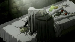 To prove what she means, Ilena takes off her cloak to show that she’s only got one arm left after the brief encounter with Priscilla. Having barely lived through it, Ilena had gone into hiding by suppressing her Yoma energy and now admits that she had been afraid. Clare, however, still wants to continue on and explains that she couldn’t do anything else Teresa’s death because of how Teresa was everything to her. She had to move forward because she wasn’t strong enough to forget about everything and live as a human. Hearing all this, Ilena decides that Clare is fit for battle and prepares to teach her how to use the Quick Sword technique. After a bit of training, Clare is able to somewhat imitate it, but only for a short period of time. As Ilena explains, the technique is accomplished by releasing all her Yoma energy into one arm so that just that arm awakens. Despite being exhausted from trying it, Clare isn’t ready to quit and claims that the style is most suitable for herself. Meanwhile, back in the forest, a heavily injured Ophelia cries out to her brother who she remembers had died protecting her. Her anger at Clare and towards the Yoma who killed her brother causes her to use so much of her Yoma power that she regains consciousness a little later feeling really good, but very hungry for human innards.