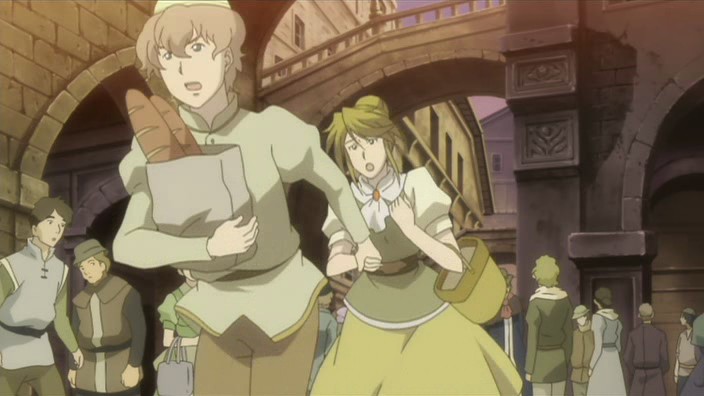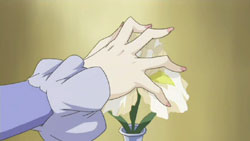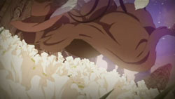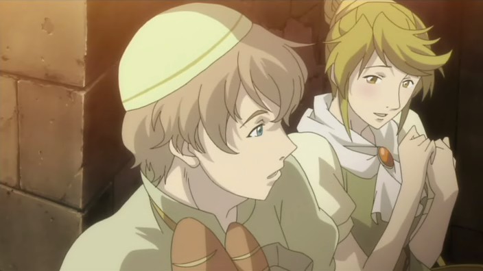 With Petruchio’s passing, Romeo goes through his stuff and finds some colored rocks that Petruchio had wanted to give his siblings. Romeo vows to bring these to Petruchio’s siblings and is visibly affected by the death, so Giovanni tells him that death here is something that happens daily. A frustrated Romeo is later working in the mines and thinking about how powerless he is when an earthquake causes some rocks to dislodge from the ceiling and almost crush him. Romeo manages to escape unscathed, and afterwards, Giovanni tells him to go back to Neo Verona or else he’ll die. Meanwhile, Hermione pays a visit to Romeo’s room to decorate it with roses. When she finds a sole iris sitting on his desk, she pulls off a petal and then falls to her knees in despair. Inside the city, Cerimon’s search for Juliet brings him to the house of some commoners with a daughter. However, after breaking down the door and entering, he finds only the body of a girl who had died after her cold got worse. Her father is angered by her death and confronts Cerimon about how this kind of thing didn’t happen during the time before girl was born, but Cerimon just knocks him out of the way. Cordelia happens to be part of the crowd that has gathered outside the house and speaks out against Cerimon, but when the soldiers come after her with their swords drawn, it’s Benvolio who pulls her away to safety. With the help of a tavern owner, they are able to escape, and Cordelia becomes embarrassed afterwards over how Benvolio had been holding her hand.