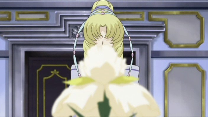 Now I realize that the show has taken many liberties with the original Romeo and Juliet story however, I still have to admit that I love it. The role reversals, the imported characters, everything. It adds a fresh twist to the original story while still carrying on the key points. Also, I think that Romeo’s journey to the mines has had a certain amount of symbolism to the story and added a new level. Now, I’ll admit, I do agree that the mine episodes were perhaps a bit predictable or boring at times, but as I watched them, I came to notice a change in Romeo. He’s moved on from being the pampered son of the Duke into an independent individual. A few episodes back, he couldn’t even tell the difference between a potato and a rock. Now, he has begun to fully work, and has come to realize the true scope of his fathers evil. What’s more, he has finally asserted himself as a leader. While he spoke against his father before, he didn’t really take any actions that fully asserted himself as an individual. This time though, he has clearly pointed out that he is a leader, and he is making his own choices. He won’t go crawling back to his father apologizing anymore. (Or, at least, thats what I’m thinking.) This episode also helped show that there is a definite bond between Romeo, Juliet, and Escalus as Juliet felt Escalus’s pain when Escalus’s roots were causing the earthquake in the mine where Romeo was. My last quick note is that there is definitly a hint of destiny and prophecy written in this story as Romeo and Juliet are almost always seen together under an image of the goddess or with Escalus’s roots. Also, when the doors of Escalus’s chamber are shown, we can see both of the family crests present as well as on a side wall, the image of a man presenting a woman with long flowing hair, what appears to be an iris.