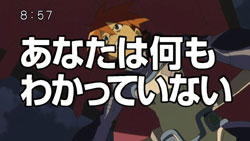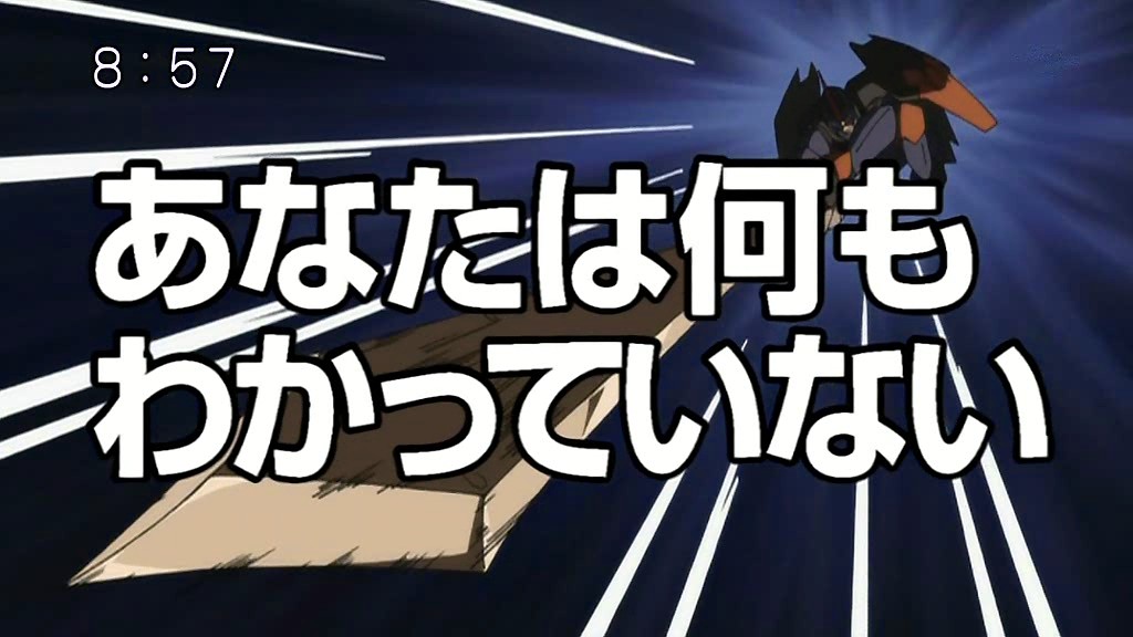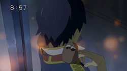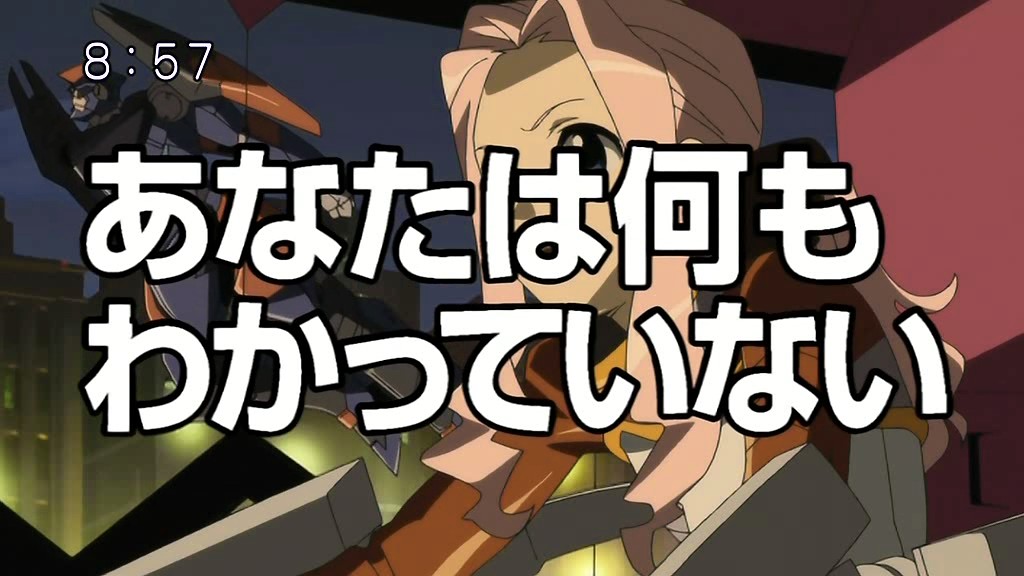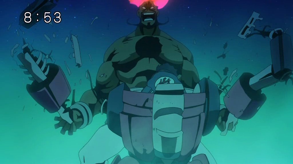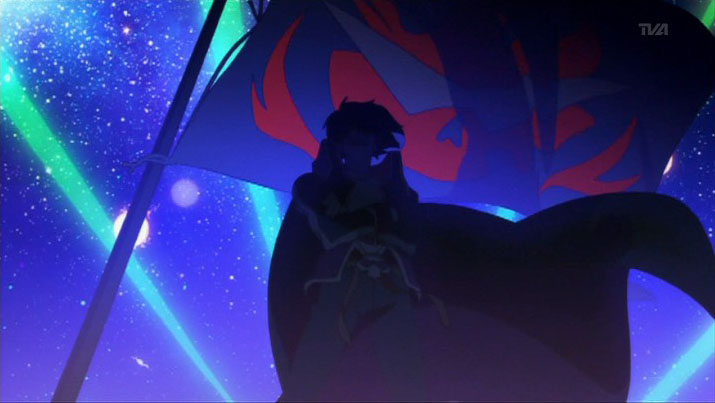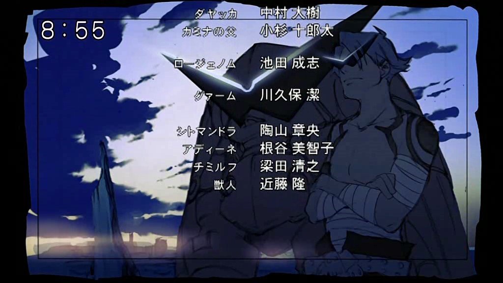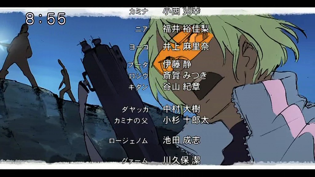 As far as recaps go, this is quite possibly one of the best I’ve ever seen. They got creative by using flashes of live-action writing to precede characters’ lines and accompanied it all with great music, so it was actually pretty fun to watch. The first half of the episode focused on Kamina, Yoko, and how Kamina died while the second half had more Simon and Nia leading up to what happened in last week’s episode.