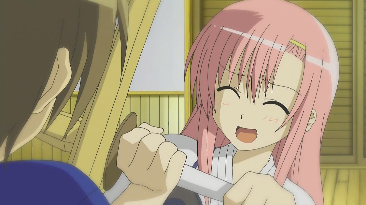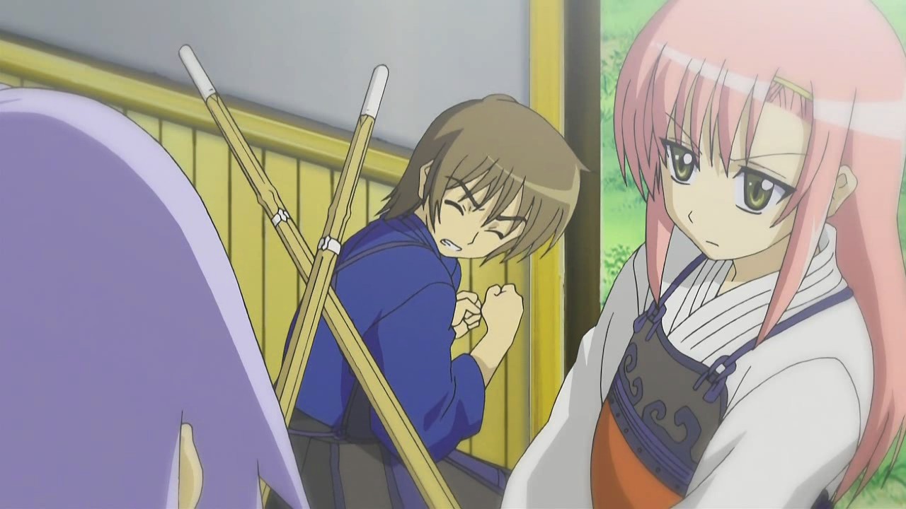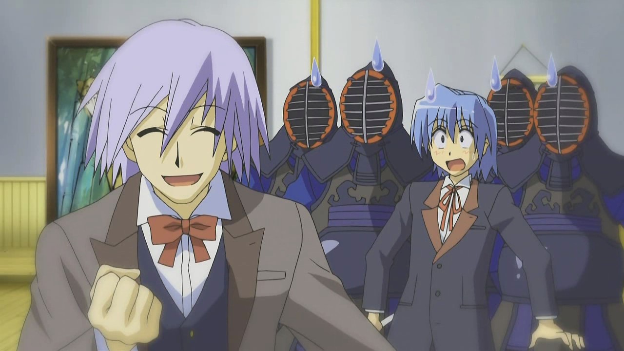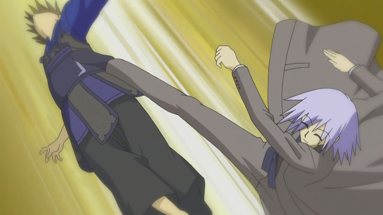 Instead of himself fighting Hayate, Azumamiya Koutarou calls in his butler Nonohara Kaede to do the work. To Hayate’s surprise though, Nonohara starts out by kicking his own master and beating up on him because he doesn’t like to be relied on by a weak man who does nothing. When Hayate questions if it’s okay for a butler to act like that, Himuro explains that it’s a butler’s duty to guide their master in the right direction, and he points out that that’s the reason Hayate had been trying to teach Nagi the joys of sports. It is ultimately Hinagiku who steps in to stop Nonohara from smacking Koutarou with a shinai because she feels that she has to help a troubled student as the student council president. However, Koutarou now understands that he can’t be weak, so he decides to challenge Nagi to a kendo match since he believes that a master should fight a master and a butler should fight a butler. Nonohara actually approves of this way of thinking, but since Nagi can’t fight, Hinagiku decides to fight for her. Thus, the battle becomes Hinagiku and Hayate versus Koutarou and Nonohara.
