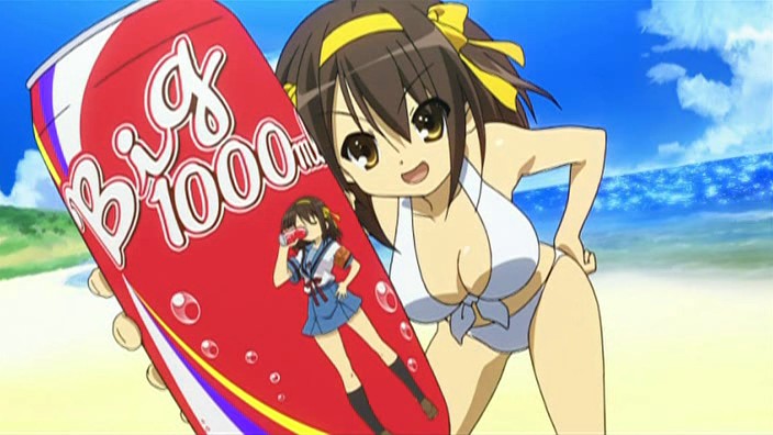 Haruhi Suzumiya now makes a cameo apperance in like star for a soda.