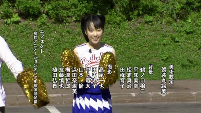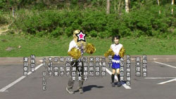 Shiraishi in a schoolgirl-print shirt, blond wig, and pom poms (similar to the ones in the OP) doing some ridiculous impromptu cha-cha dance while Fukuhara Kaori tries to follow his steps. Zoom out to show a couple walking by in the background, trying hard to ignore those “damn kids” while completely oblivious to the fact that they have just been immortalized in a production their children are shamelessly watching late into the night.